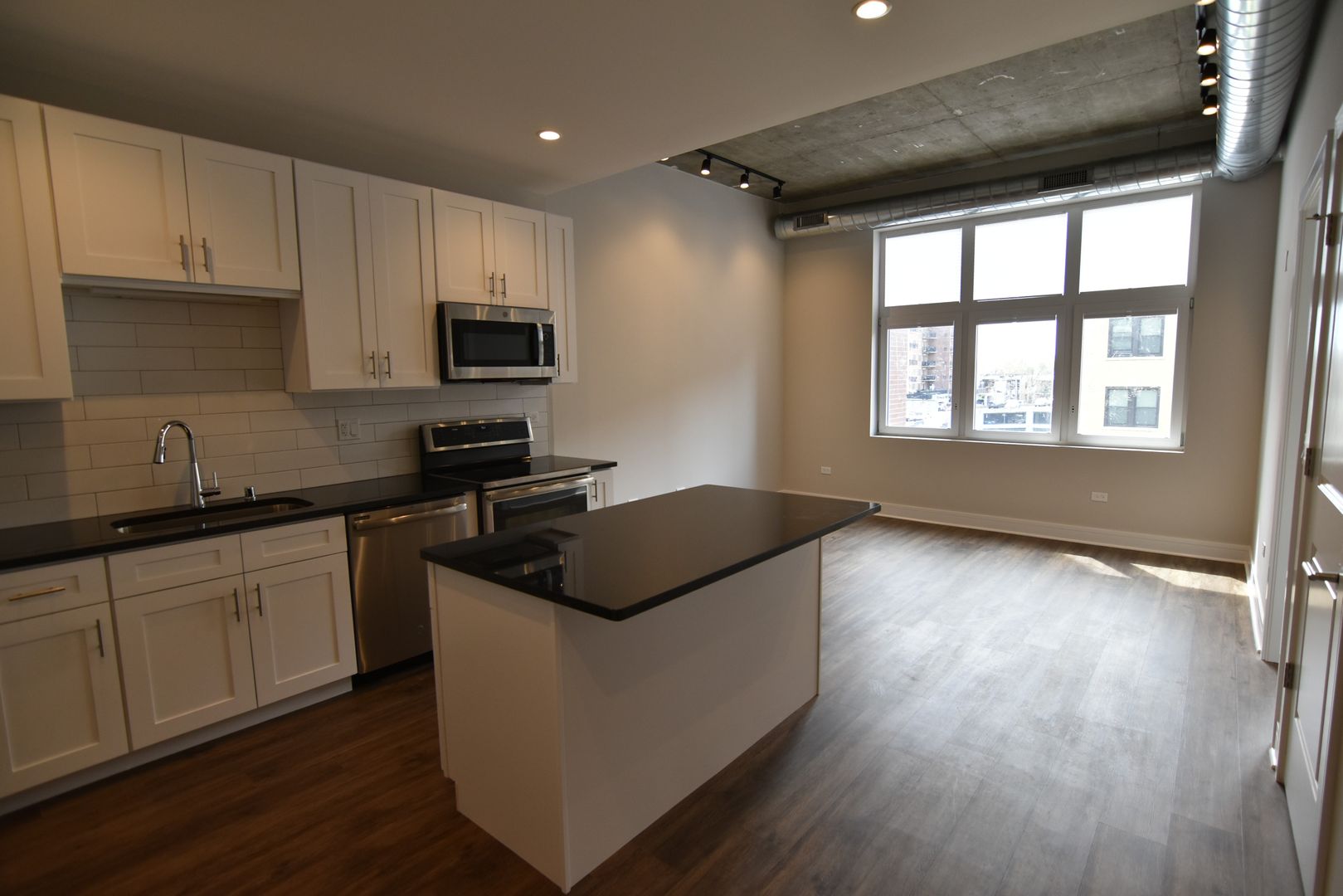 This Junior 1 bedroom unit is east facing and has a good size bedroom and cozy kitchen / living area. This new construction is a must see. Unit has full size windows throughout and a completely modern feel!