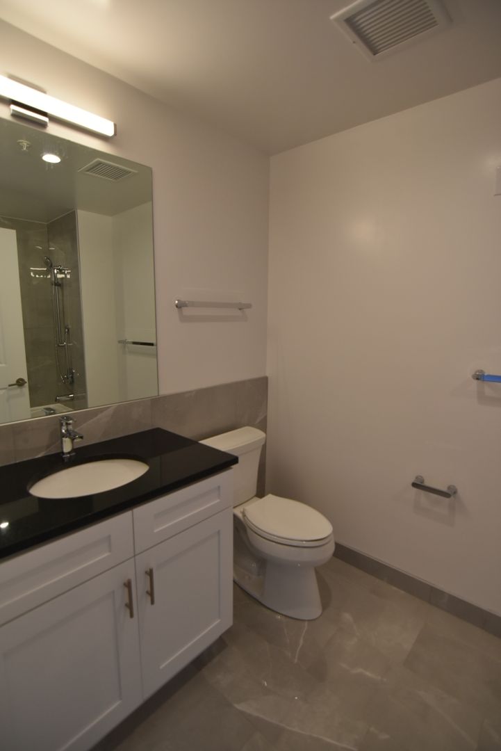 Large doorways for each room. Large modern bath with tub / shower combo, new marble tiling and modern black granite surfaces.