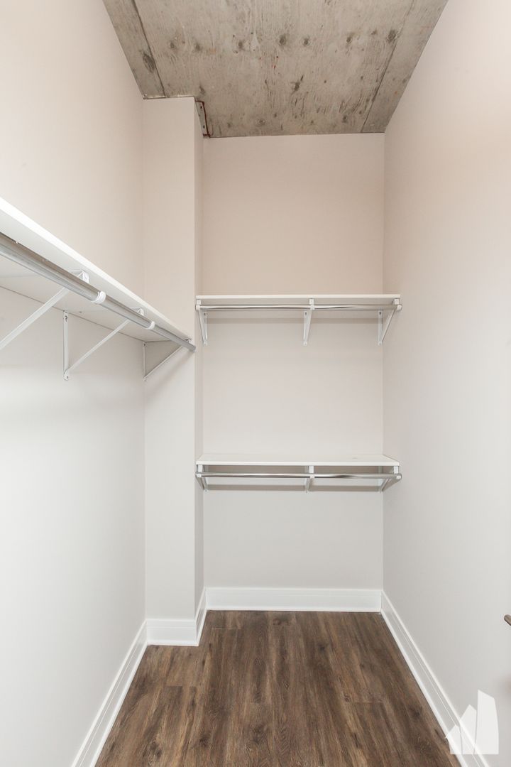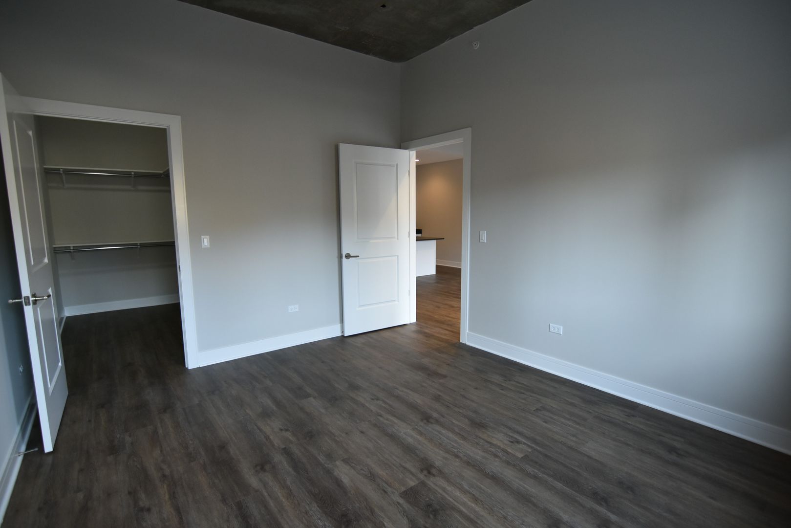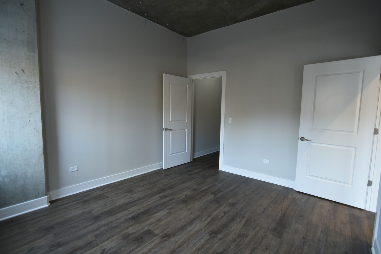 The king sized bedroom features natural light and giant walk in closet. The unit has new LVT flooring, high ceilings and exposed ducting.