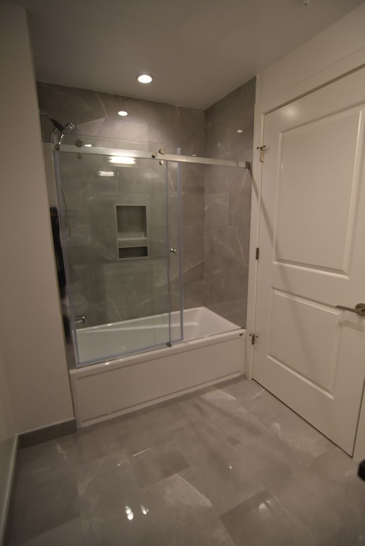 LVT flooring, high ceilings and track / recessed lighting. The bedroom will easily accommodate a King bed and features a massive walk in closet.