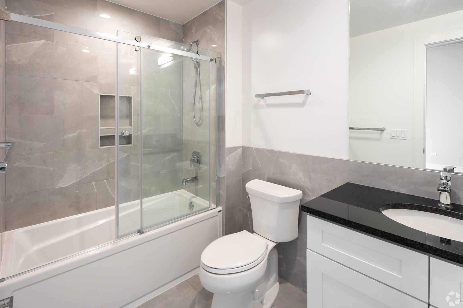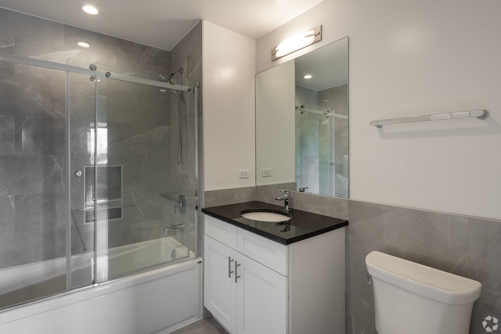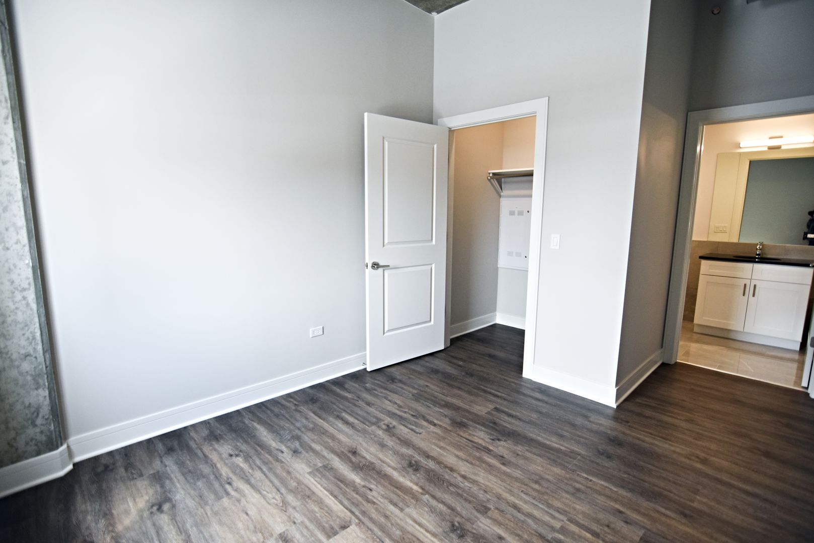 LVT flooring, high ceilings and track / recessed lighting finish this newly constructed unit.