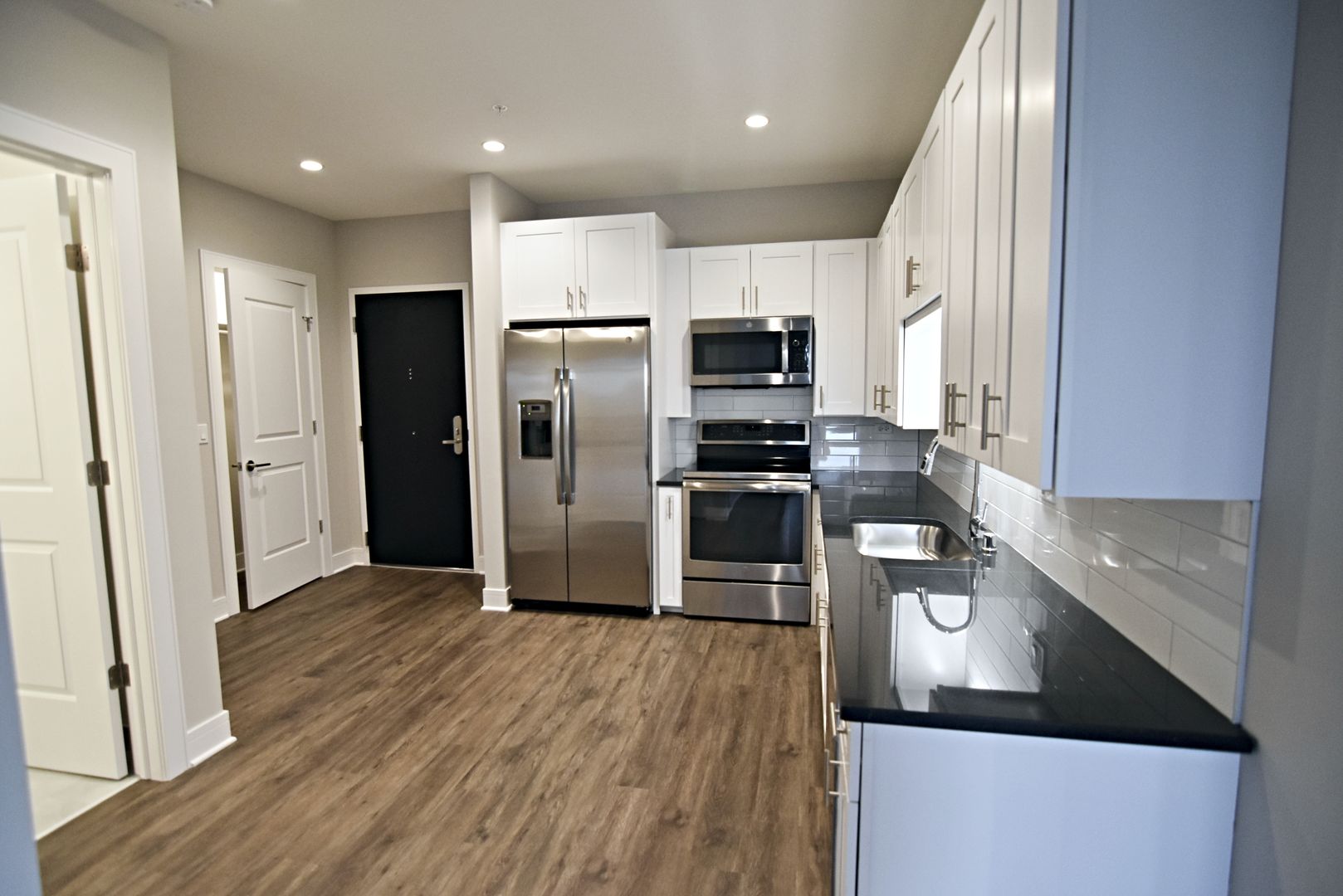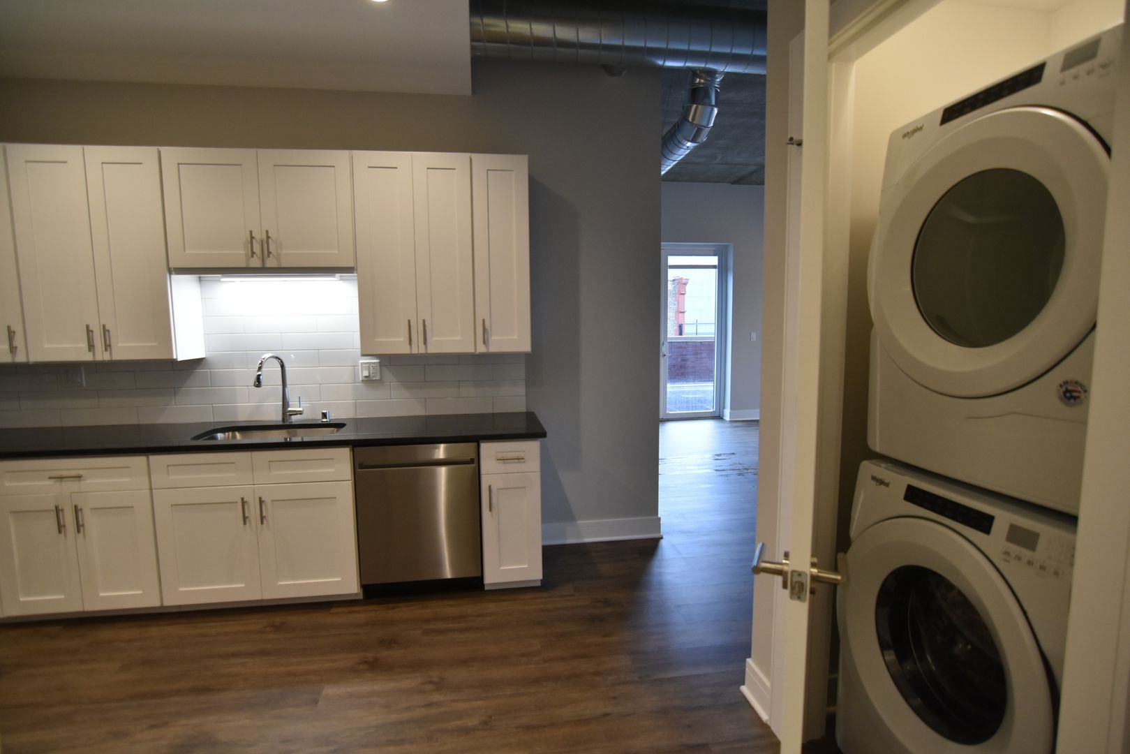 The unit has a new modern kitchen with stainless steel appliances including dishwasher & energy efficient induction cook top. LVT flooring, high ceilings and track / recessed lighting finish this newly constructed unit.