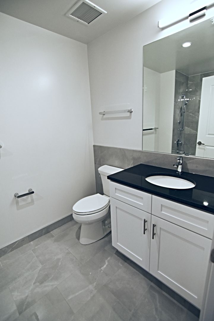 This 1 bedroom unit is west facing and has a large bedroom and bright kitchen / large living area. This new construction is a must see. Unit has full size windows throughout and a completely modern feel!
