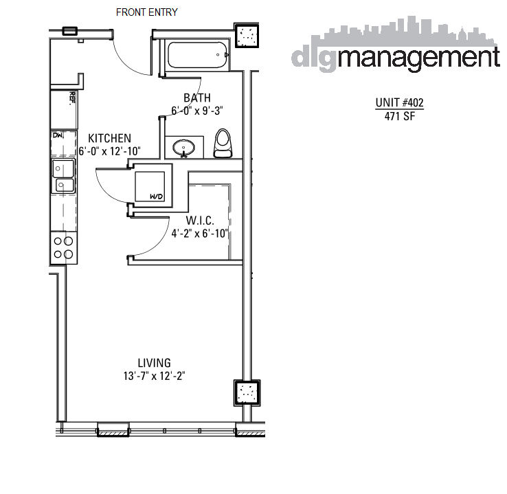 This studio on the 4th floor faces west and gets a glorious amount of natural light throughout the day. It has a great layout with a large bath and huge walk in closet.